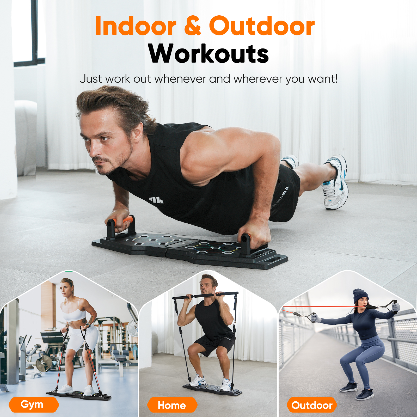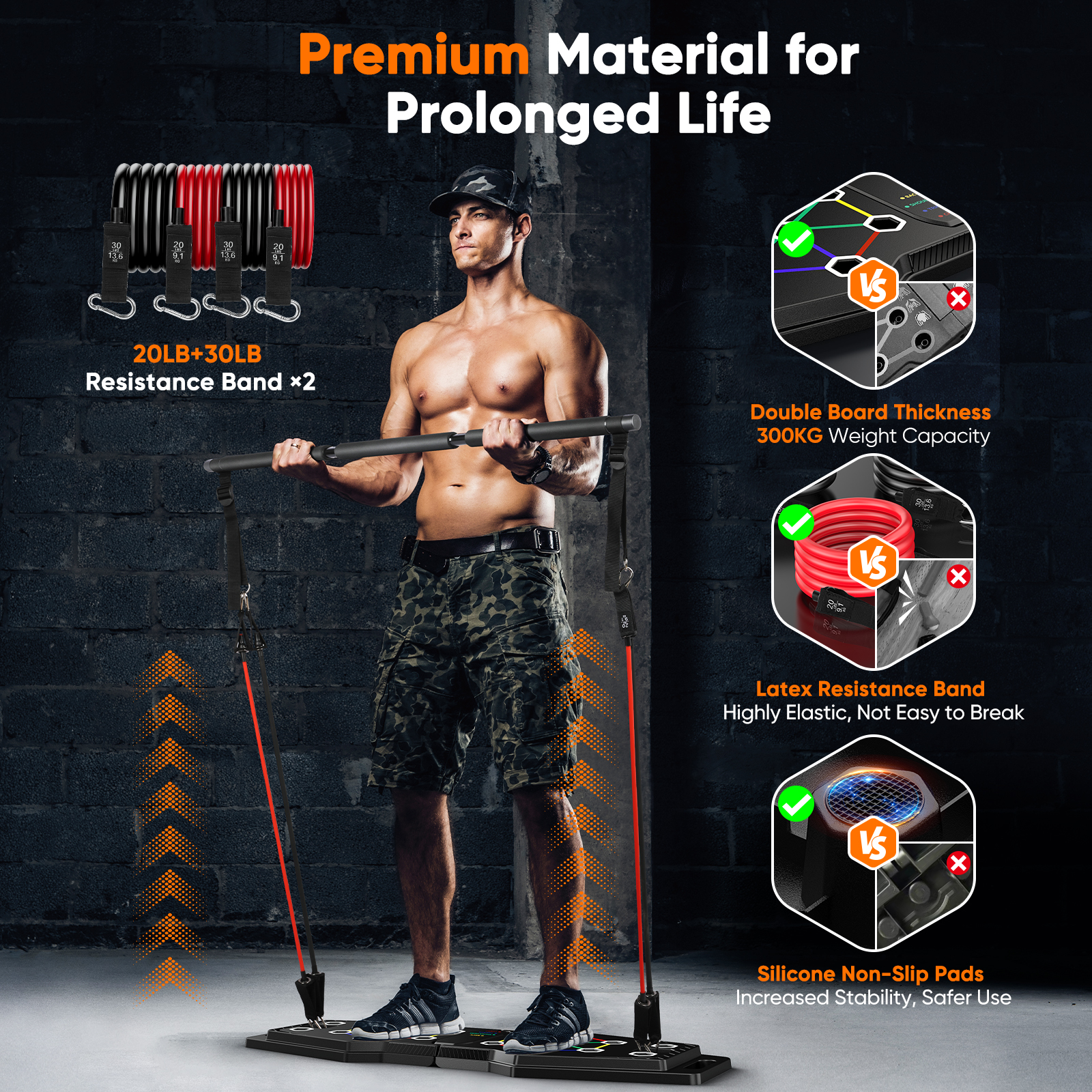 – . The push-up board is crafted with quality ABS material with high durability and rigidity.