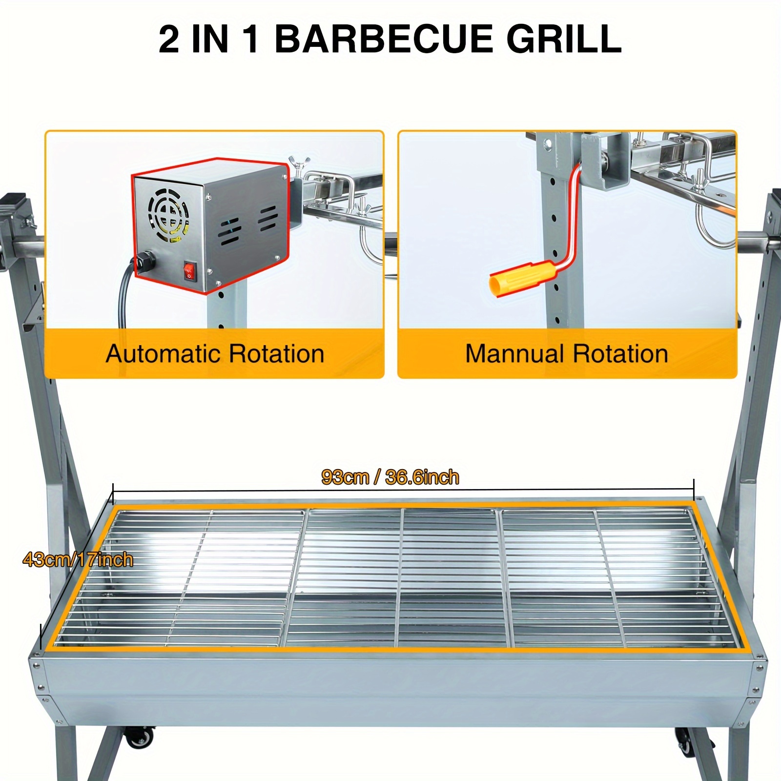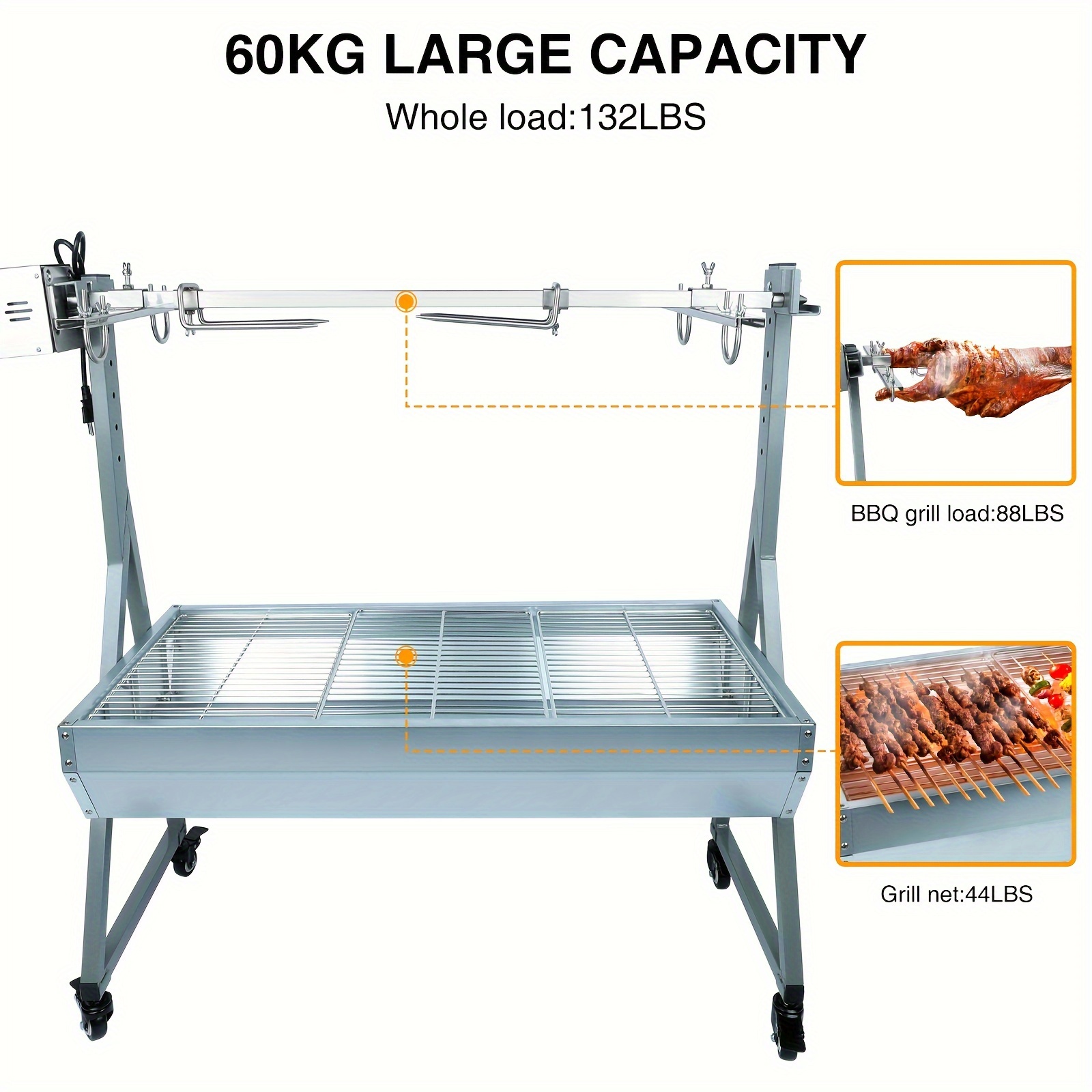 Rotisserie Grill With Wind Screen Roaster BBQ Outdoor Pig Lamb Rotisserie Roaster 132LBSu002F60KG Stainless Steel Charcoal Spit Rotisserie Roaster Grill For Camping Outdoor Barbecue